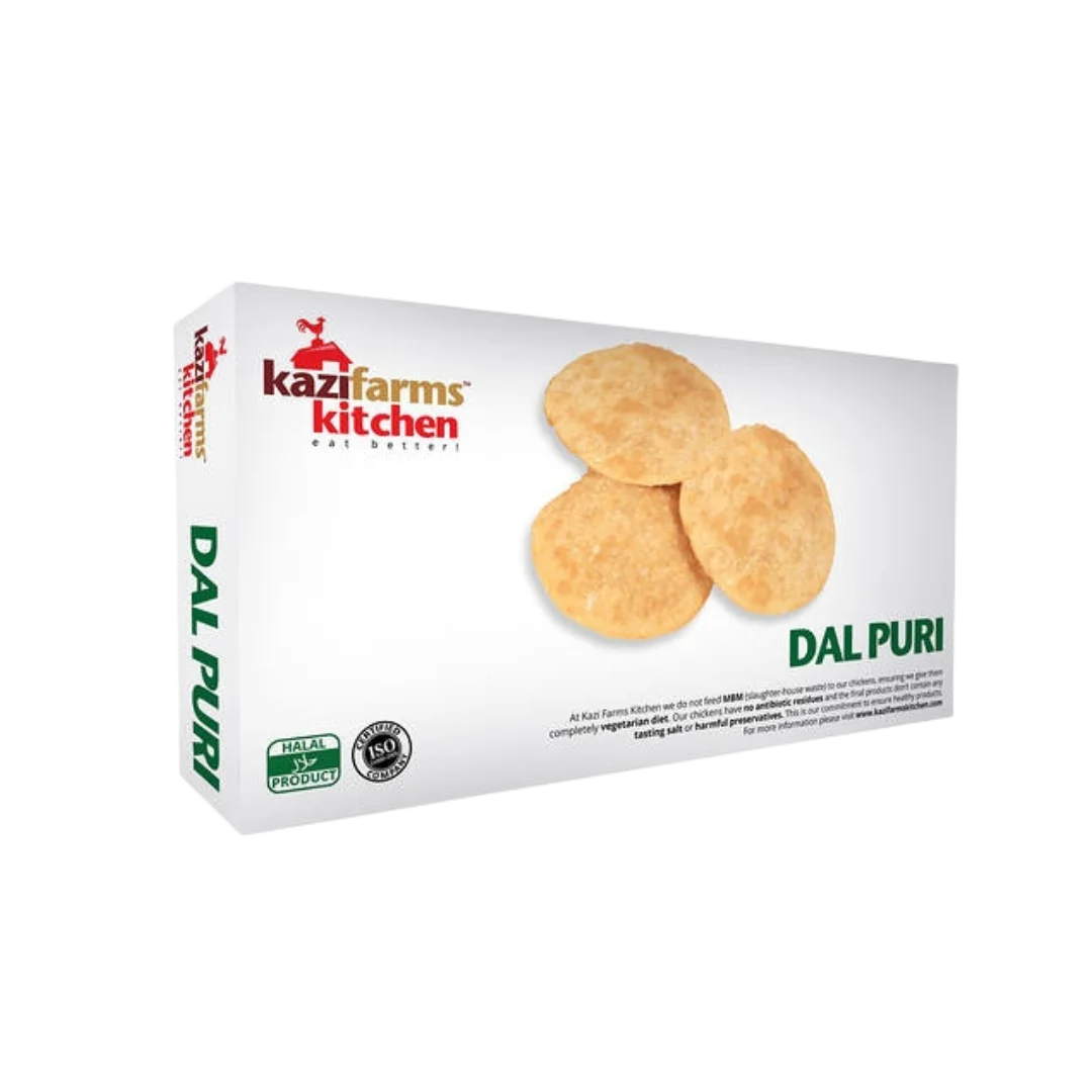 Kazi Farms Kitchen Dal Puri is a delicious, ready-to-cook frozen delicacy ideal for wholesalers, retailers, and food service businesses. Stuffed with a savoury lentil (dal) filling and wrapped in a crispy, golden crust, this puri offers authentic homemade taste in every bite—perfect for breakfast menus, snacks, or festive spreads.